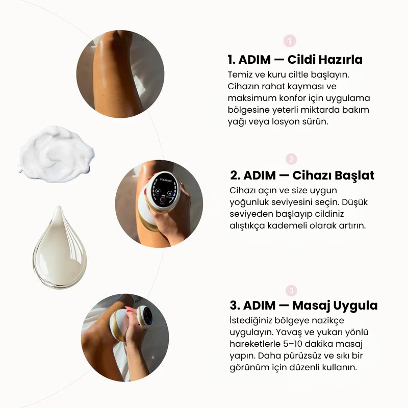 Cildi nazikçe ısıtarak dolaşımı ve elastikiyeti destekler.